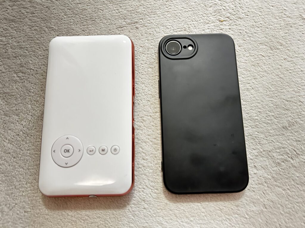 左がカベーニ。右はiphone16eです。スマホサイズなんです!とってもコンパクト!
