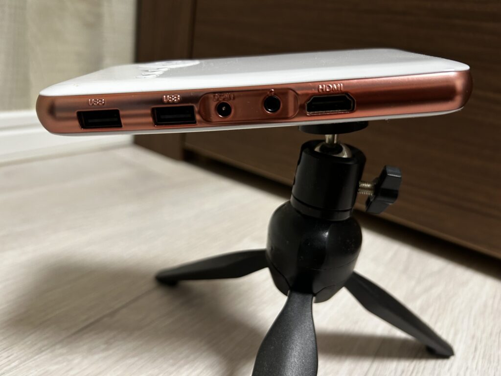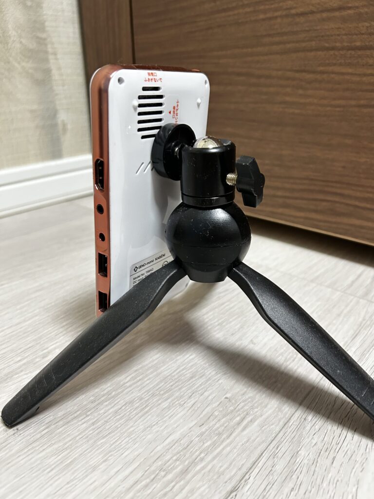 こんな感じで同胞の三脚でプロジェクターを立てて天井に投影します!